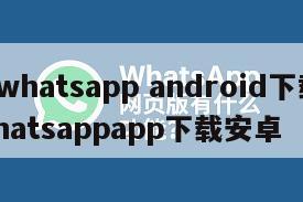 WhatsApp安卓下载方法 要在安卓手机上下载WhatsApp,首先需要打开您的设备上的应用商店,通常是Google Play商店。在搜索栏中输入WhatsApp并点击搜索按钮。在搜索结果中找到WhatsApp应用程序后,点击安装按钮开始下载 。下载完成后 ,应用程序将自动安装到您的手机上。