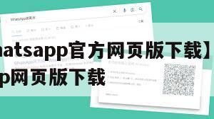 6、下载WhatsApp电脑版 访问官网:首先 ,打开您的浏览器,并访问WhatsApp的官方网站。由于直接链接可能随时间变化,您可以通过搜索引擎搜索“WhatsApp 官方网站”来找到最新网址。下载安装包:在WhatsApp官方网站上 ,找到并点击“下载”选项 。